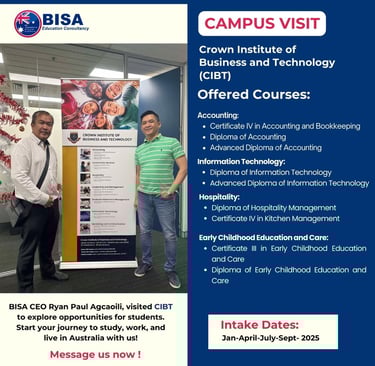 BISA Education Consultancy is a trusted education and student visa consultancy helping international students study in Australia through expert guidance, ethical advice, and end-to-end application support.